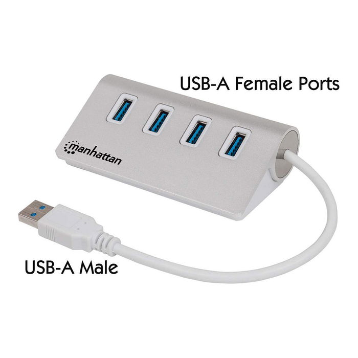 Manhattan Hub USB 3.0 SuperSpeed de 4 Puertos, USB 3.2 Gen 1 (3.1 Gen 1) Type-A, USB 3.2 Gen 1 (3.1 Gen 1) Type-A, 5000 Mbit/s, Aluminio, Blanco, Aluminio, 0,3 m
