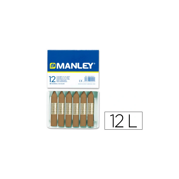 Manley Lápices de Cera Unicolor Tierra Sombra Tostado N.68 Caja de 12 Unidades Suavidad y Resistencia a la Luz Ideal para Superficies Porosas