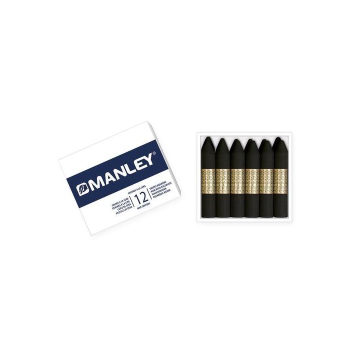 Manley Lápiz Cera Unicolor Negro n.30 Caja de 12 Unidades, Suave y Resistente a la Luz, Ideal para Superficies Porosas