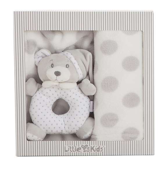Set Caja Manta Gris 100 X 75 + Sonajero 16 Cm