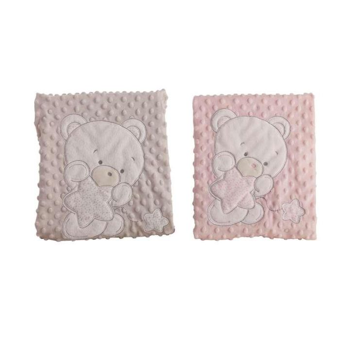 Creaciones Llopis Manta Doble Oso Bordado Rosa 100x75cm en Cajita de Regalo