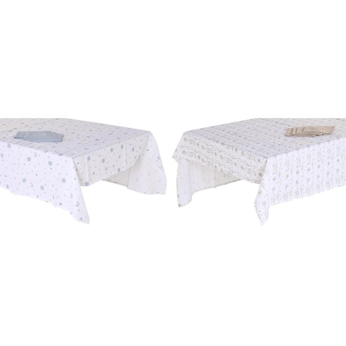 DKD Home Decor Mantel Atlantico Stella Maris Azul Blanco Polyester Algodon 250 x 150 cm Set 9 Piezas (2 Unidades)