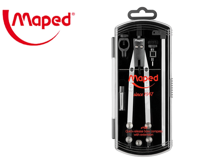 Maped Compás Técnico con Bigotera y Alargador, Stop System, Adaptador Universal, 5 Piezas