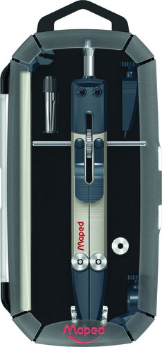 Maped Compás Técnico con Bigotera y Alargador, Tornillo Micrométrico, 5 Piezas