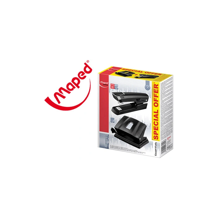 Maped Kit Essential Grapadora Metal 354311 25H Clavado Carga Superior Negro + Perforadora 402411 35H 2 Agujeros A3 A4 A5