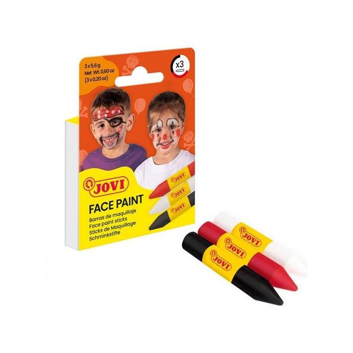 Jovi Maquillaje Estuche 3 Barras Rojo Blanco Negro para Fiesta Carnaval Halloween Seguro Dermatológicamente Testado