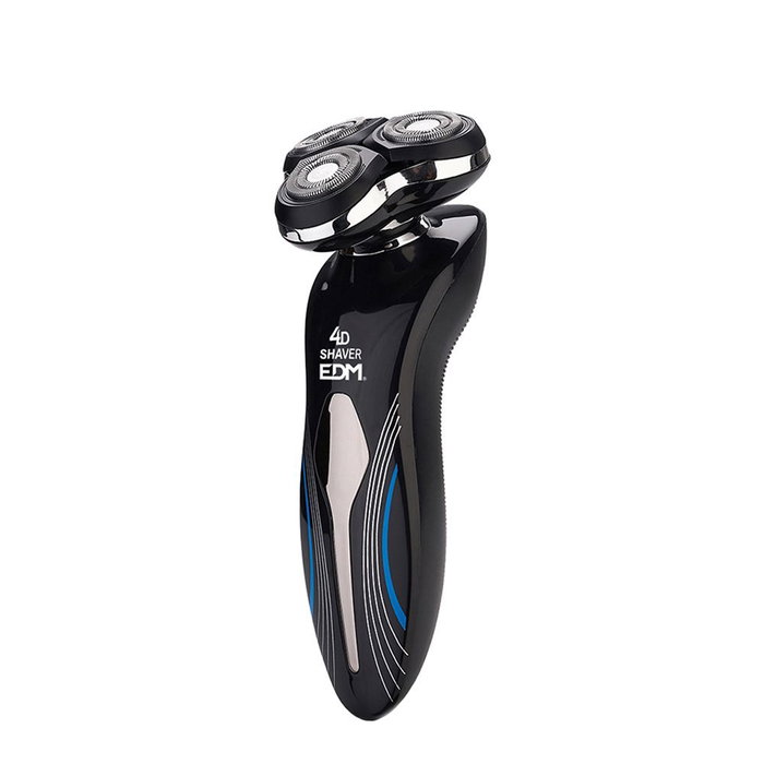 Afeitadora electrica recargable. inalambrica. potencia 3w, cuchillas auto-afiladas. cabezal triple individual flotante. accesorios: cepillo de limpieza + adaptador + 2 baterias de ni-mh - 8h de carga 60min de funcionamiento, indicador de carga led. lavable abriendo el cabezal de afeitado para enjuagarlo. dimensiones: 6,5x7x16cm (ancho/fondo/alto) 110-240v 50hz edm