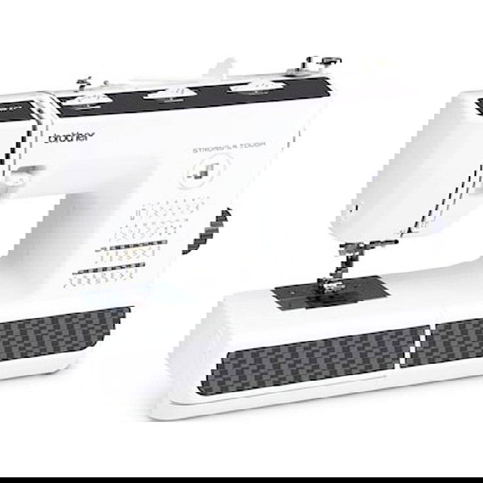 27 puntos de costura utilitaria y decorativa, incluido 1 ojal 100% automático - Sistema de enhebrado de aguja - Iluminación LED - Brazo libre - Ajustes de longitud y ancho de puntada - Descenso de 6 puntas - Placa de aguja - Gancho de metal - Incluido: conjunto de accesorios completos + DVD - Garantía: 2 años