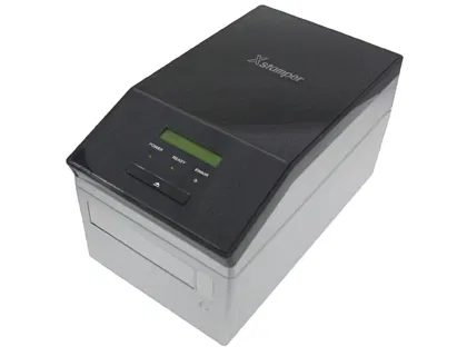 La máquina X Stamper Quix de sellos preentintados viene equipada con todo lo necesario para hacer sellos. Admite hasta 15 tipos de sellos en diferentes tamaños. Incluye software con guía. Interface: USB2.0(Hi-Speed), Ethernet. Sistemas compatibles: Windows XP / 7 / 8 / 8.1 / 10. Espacio de impresión: 53 x 100 mm. Resolución: 600 dpi. Medidas: 222 x 384 x 228 mm. Peso: 7 kg.