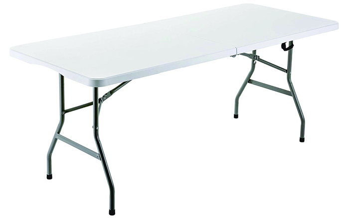 Útilidad y Cómodidad. Mesa plegable de la marca Marbueno. Esta mesa de exteriores de resina se puede usar en el jardín, en la playa, camping o caterings. Su diseño moderno y elegante combina en cualquier lugar. Multifuncional. Mantenimiento: Fácil de limpiar con un paño húmedo. Evitar los productos abrasivos. Cuando la mesa no esté en uso es recomendable guardarla en un lugar libre de humedad. Características técnicas Material: Resina y Acero. Color: Blanco. Dimensiones: Largo 180 Ancho 70 Alto 74 cm. Bloqueo de seguridad: Sí. Marca: Marbueno. -