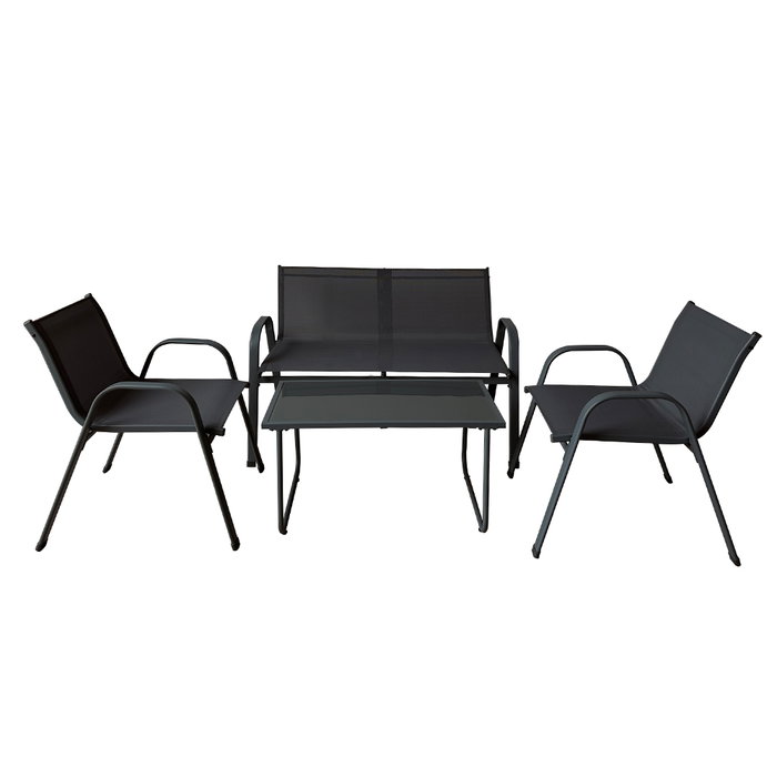 Marbueno Set Mesa y Sillas de Jardin Acero Negro Textilene 10468
