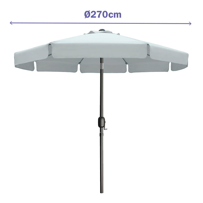 Grandes dimensiones. La sombrilla de la marca Marbueno, le proporcionará una gran área de sombra en cualquier espacio. Su diseño moderno y elegante combina para zonas residenciales y comerciales como jardín, piscina, terraza, patio trasero, césped, balcón, restaurante y cualquier otra área al aire libre. El techo de la sombrilla es doble, de tipo chimenea para favorecer la circulación del aire y hacerlo más estable en días de viento suave. Materiales de calidad. La estructura de la sombrilla se compone de dos postes separados y 8 varillas de acero. La cubierta de polyester de 180 g/m², filtra los rayos solares y mantiene el área sombreada de manera efectiva. Plegable y Portátil. Fácil de montar y desmontar, se guarda en su funda con asa para transportar fácilmente. Su manivela le resultará súper cómoda de utilizar para abrir y cerrar la sombrilla con facilidad. Pesa 4,2 kg, por lo que es fácil de transportar de un sitio a otro. La base/soporte NO ESTÁ INCLUIDA. Peso del artículo: 4,2 kg.