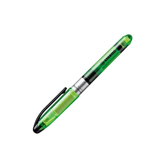 Stabilo Marcador Fluorescente Navigator Verde Caja 10 Ud, Diseño Fino, Tecnología Anti-Secado, 4 Horas Protección