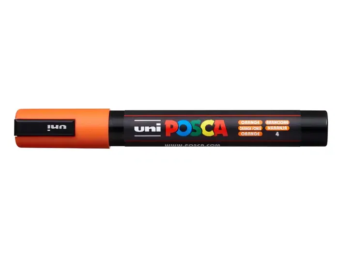 Posca PC-5M Rotulador de Pintura Base Agua Color Naranja, Punta 1.8-2.5mm, No Tóxico, Pinta Sobre Metal, Vidrio, Plástico y Más