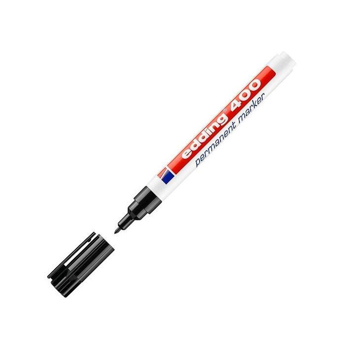 Edding Marcador Permanente 400 Negro, Tinta Resistente al Agua y Fricción, Trazo Fino de 1mm para Diversos Materiales