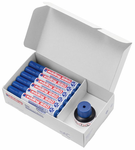 Marcador Pizarra Edding 660 Conico Azul Caja Promocional De 20 (Regalo Bote Tinta Para Rotulador De Pizarra Btk25 25Ml. Azul)