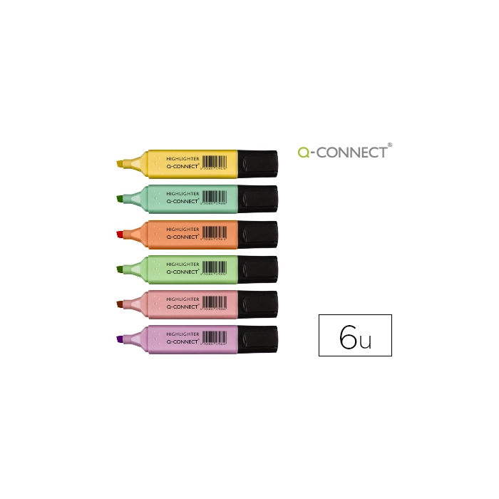 Q-connect Rotulador fluorescente pastel, punta biselada, estuche 6 unidades, colores surtidos, trazo 1-5 mm