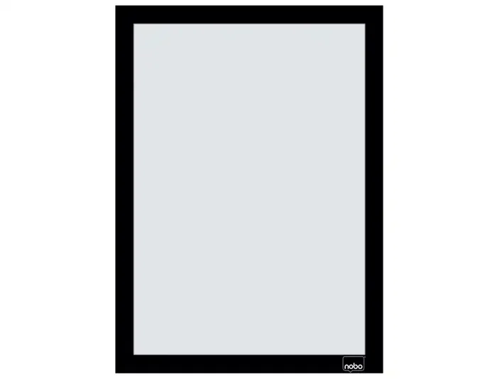 Marco magnético autoadhesivo para la exposición segura de carteles, señales e información. El marco cuenta con una banda magnética en la parte inferior del marco que permite cambiar el contenido de forma rápida y sencilla y mantener las páginas seguras. Este marco magnético se fija firmemente a superficies planas en formato vertical u horizontal gracias a su base autoadhesiva, y la tapa mate transparente ayuda a proteger el contenido que hay debajo y se puede limpiar con un paño. Área de exposición A4. Pack de 2 marcos informativos de color negro.