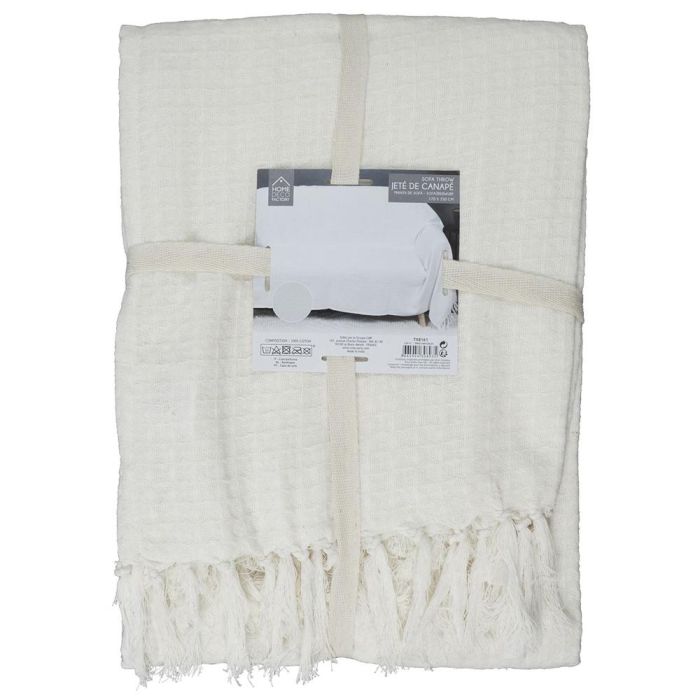 - Decora con originalidad con esta manta gofrada de color marfil.