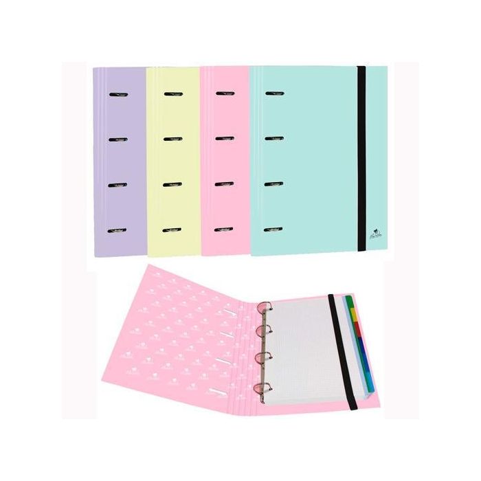 Mariola Carpeta Anillas Mixtas Carpeblock C-Recambio 100H A4 C-Goma 6 Separadores Cartón Forrado Surtidos Pastel 25 mm