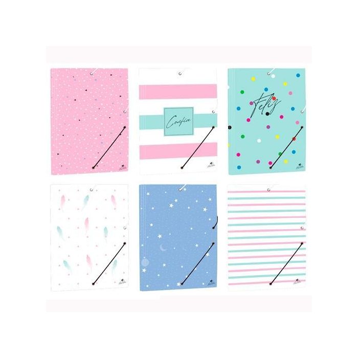 Mariola Carpeta Folio Cartón Forrado Plastificado con Gomas y Solapas Diseños Surtidos Pastel