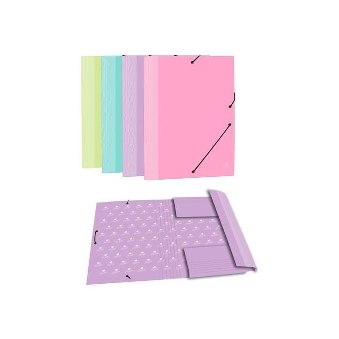 Mariola Carpeta Con Gomas 3 Solapas Folio Cartón Forrado Plastificado Mate Surtidos Pastel