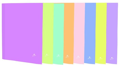 Carpeta con cuatro anillas redondas fabricada en cartón forrado con papel plastificado mate, en tonos pastel. Medidas: 340 x 265 x 55 mm.