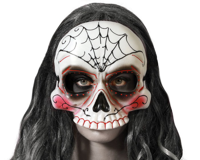 Honra la cultura mexicana con esta máscara blanca decorada con patrones florales y colores vivos. ideal para completar un disfraz tradicional del día de los muertos o para fiestas temáticas culturales. aporta un aire festivo, alegre y simbólico a tu caracterización.