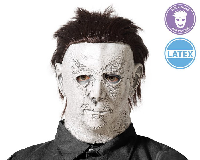 Máscara Blanca con Pelo y Rostro Arrugado para Asesino - Disfraz de Terror Realista para Halloween