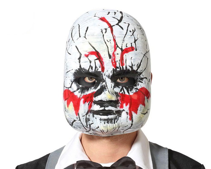 Dale un toque perturbador a tu disfraz con esta máscara de rostro roto, decorado con grietas y sangre falsa. ideal para personajes de muñeco poseído, espectro urbano o víctima de ritual oscuro. su acabado escalofriante garantiza una apariencia impactante en cualquier fiesta de halloween.