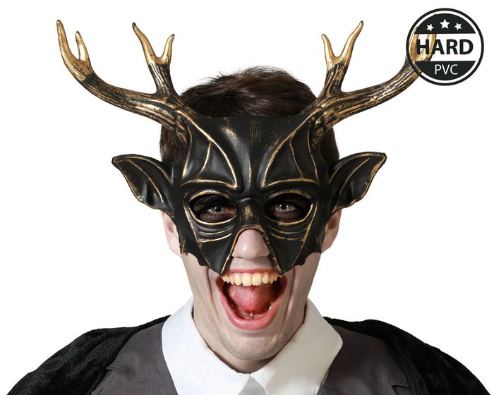 Máscara De Ciervo Negro Con Astas Doradas Para Fiestas Y Disfraces