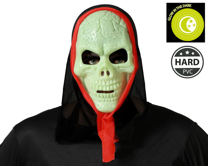Máscara Calavera Fluorescente Con Capucha Negra Y Bordes Rojos Halloween Eventos Nocturnos