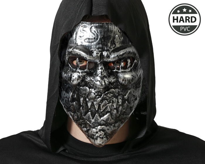 Impresiona y aterra con esta máscara gris de aspecto demoníaco y macabro. su diseño rugoso y mirada penetrante la convierte en un accesorio perfecto para disfraces de poseído, demonio o espectro. ideal para halloween, pasajes del terror o representaciones teatrales. genera un impacto visual intenso y terrorífico.
