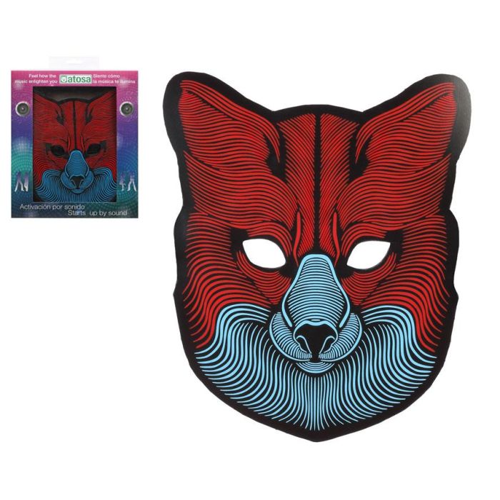 Atosa Máscara Zorro Luz Led con Sensor de Sonido para Fiestas, Halloween y Carnaval