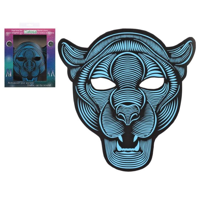 Atosa Máscara Pantera Luz Led con Sensor de Sonido para Fiestas y Halloween Azul