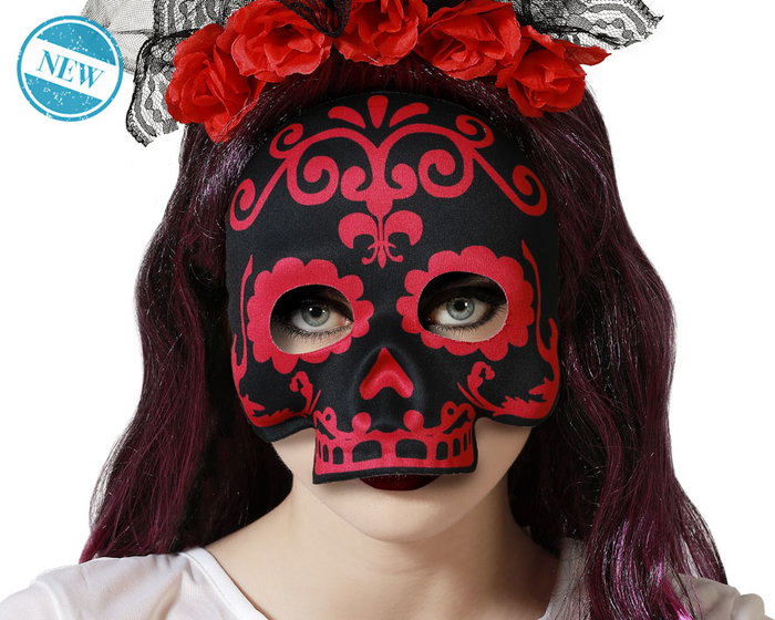 Celebra con estilo el día de los muertos con esta máscara decorada en negro y rosa. su diseño compacto de 17x17 cm la hace cómoda y vistosa, ideal para disfraces de catrina, desfiles o fiestas temáticas. aporta color, tradición y elegancia a tu atuendo festivo.