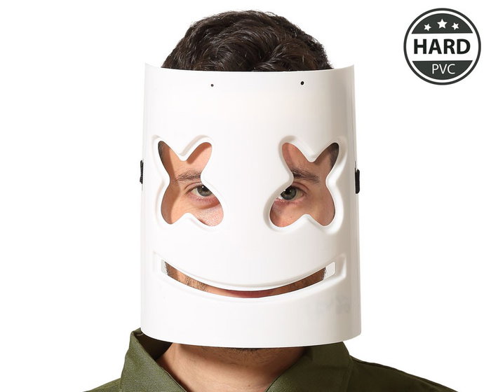 Transfórmate en una figura perturbadora con esta máscara blanca con cruces negras en los ojos. su diseño minimalista y siniestro la hace ideal para disfraces de muñeco asesino, entidades del inframundo o personajes de videojuegos de terror. fabricada en pvc rígido para una mayor durabilidad.
