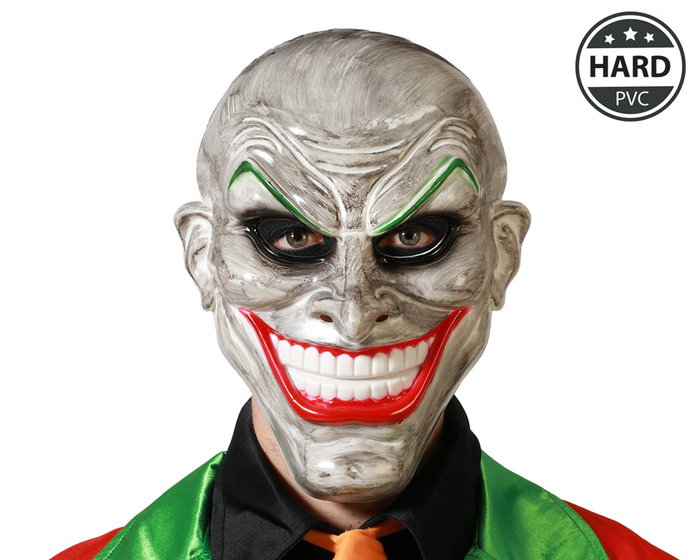 Con un diseño grotesco y expresión exagerada, esta máscara de payaso es perfecta para crear un personaje psicópata. ideal para actuaciones teatrales, escenas de terror o eventos temáticos. el acabado en pvc rígido aporta durabilidad y presencia.