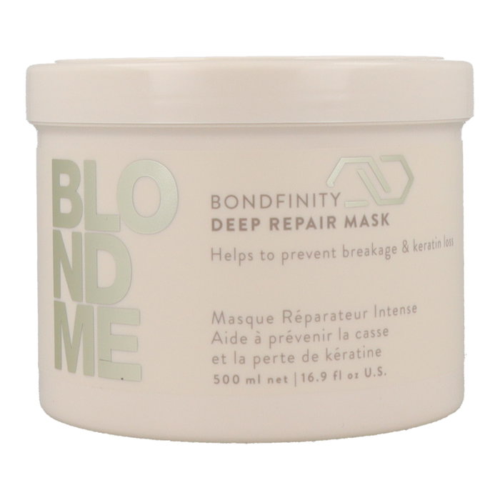 Mascarilla profesional de reparación profunda con tecnología Bondfinity que reconstruye enlaces internos y fortalece intensamente cabellos rubios o decolorados.