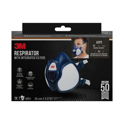 3M Mascarilla con Filtros Integrados 4251+ A1P2 Reutilizable Protección contra Gases Orgánicos y Partículas