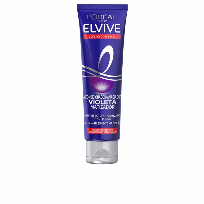 Descubre la ELVIVE COLOR-VIVE VIOLETA mascarilla matizadora de L'Oréal Paris, una solución perfecta para el cuidado y la renovación de tu cabello. Diseñada especÃficamente para cabellos rubios, decolorados, con mechas o canosos, esta mascarilla de 150 ml cuenta con una fórmula avanzada que neutraliza y elimina eficazmente los tonos anaranjados y cobrizos indeseados.