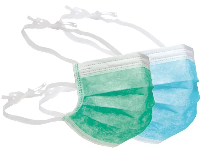 Mascarilla quirúrgica de un solo uso de la marca Bimedica, de la línea Naturcare. Presentación en color verde, con tiras o cintas de ajuste para las orejas. Paquete con 50 unidades.