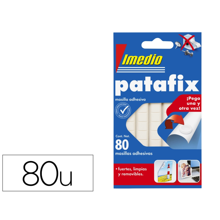 Imedio Patafix Masilla Adhesiva Removible Blister 80 Unidades para Fijar Objetos Pequeños en Hogar y Oficina