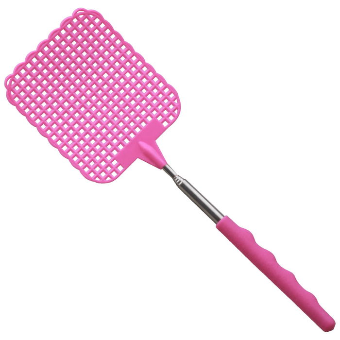 - Las moscas no se escaparán por muy lejos que se pongan gracias a este práctico y original matamoscas telescópico extensible de 26 a 72 cm.