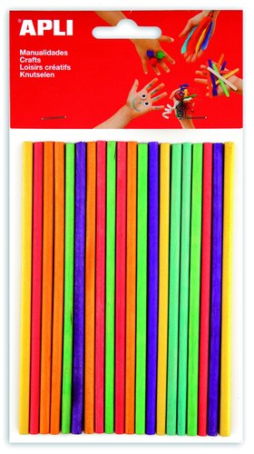 Palos redondos de madera en tamaño 150 x 5 mm y en colores surtidos. 25 palos redondos de gran resistencia, fáciles de pegar, pintar e incluso cortar. Un producto para escuelas y talleres infantiles, ideales para estimular la imaginación y creatividad de los niños.
