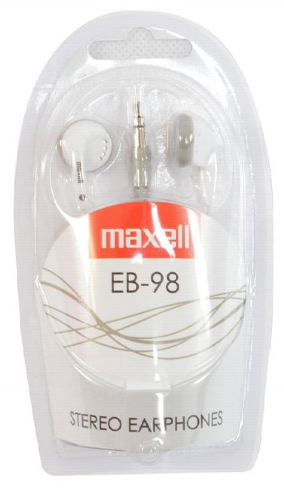 Auriculares inalámbricos MAXELL Mini EB98 de color blanco. Son auriculares ergonómicos para un sonido de calidad superior.