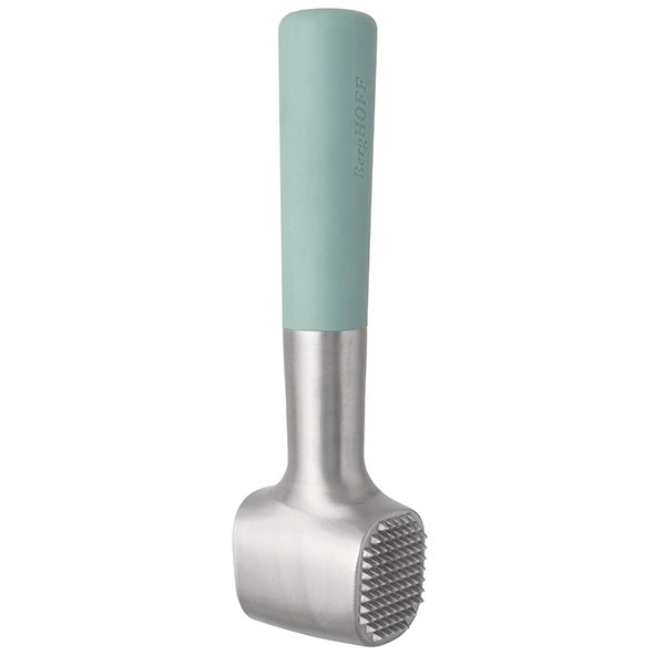 Este elegante mazo para carne tiene 2 lados distintos; un lado suave para aplastar carnes y aves y otro con picos para hacer más tierno el pollo, la ternera o el cerdo. Es también una herramienta eficaz para ajos y nueces.