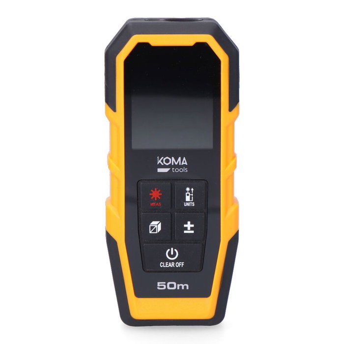 Medidor laser con funda, láser de clase ii, longitud de onda 650 nanómetros, precisión ±2 mm, rango de medición 0,05 - 50 m. funciona con 2 pilas aaa (incluidas). temperatura de funcionamiento 0°c 40°c. opciones de unidad de medida en m, pugadas, pies y medición de retraso. función de medición contínua, de área, volumen, ángulo, teorema de pitágoras, suma y resta, suma/resta de área y volumen. aviso de máximo y mínimo, pantalla retroiluminada y tono de tecla, almacenamiento máximo 99 unidades. apagado automático del láser a los 20 segundos, del aparato a los 150. medida 5,2 x 2,4 x 12,3 cm