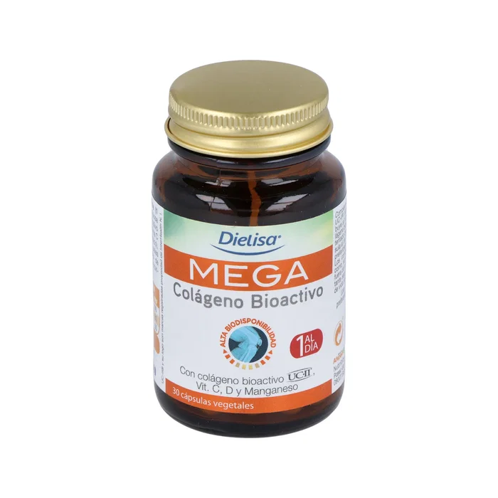 Composicion: Agente de carga: celulosa microcristalina, UCII® (colágeno nativo no desnaturalizado de tipo II: 10 mg), vitamina C microencapsulada (ácido L ascórbico), antiaglomerantes: dióxido de silicio, sales magnésicas de ácidos grasos, sulfato de manganeso, colecalciferol. Cápsula vegetal: Hidroxipropilmetilcelulosa, colorante: dióxido de titanio. Por 1 cápsula: Colágeno Bioactivo UC-II® .................................40 mg Colágeno nativo no desnatauralizado................... 10 mg Vitamina C .......................................................5 µg Vitamina D .......................................................24 mg Manganeso ......................................................2 mg