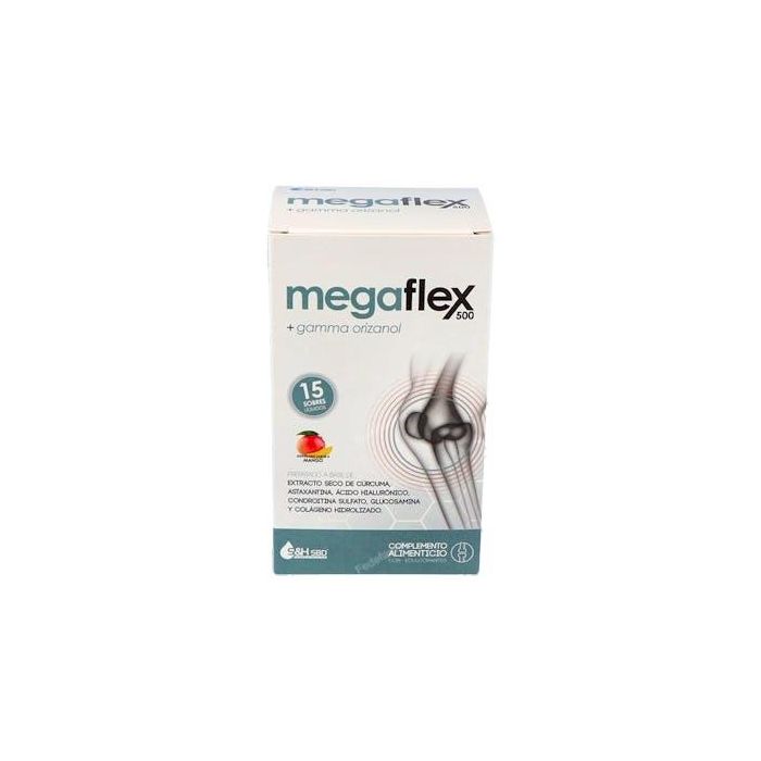 GENOMIX PHARMA Megaflex 500 14Sbrs Complemento Alimenticio para Cartílagos y Articulaciones con Colágeno, Glucosamina y Condroitina Sabor Mango